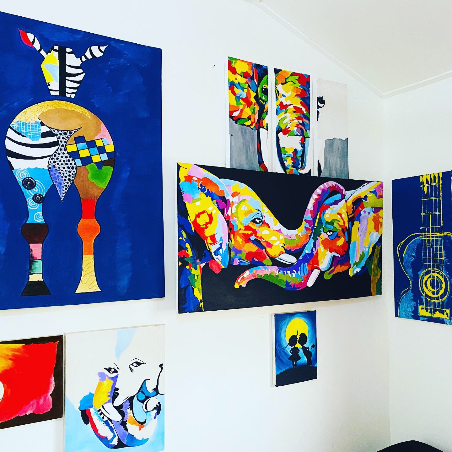 The animal is here. Standing in the painting. But the natural curbs of the zebra create motion. The movement of the paint brush only accentuate it. It gives the impression that the environment was put around the zebra. And not the opposite. Which gives the zebra an importance. That everything is resolving around it. In a very subtle way.